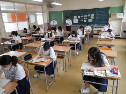 6月18日(木)3限目です。2年生です。保健体育です。男子は体育館です。女子は2つの教室に分かれて座学です。