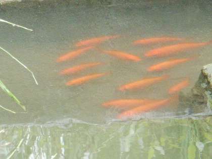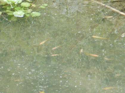 めだか、金魚、噴水です。ザリガニもいますが撮影しようとすると逃げられました。