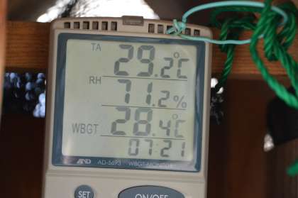 晴れ、気温29.2度、湿度71.2%、WBGT指数28.4です。