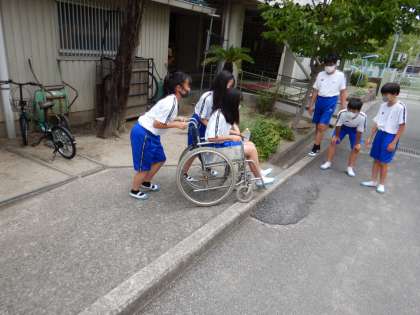障がい者問題理解のために、アイマスク体験、車いす体験、シッティングバレーボール体験に取り組みました。