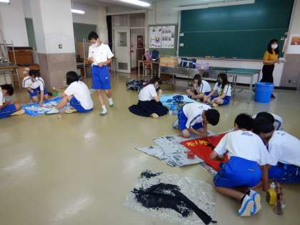 そろそろ完成間近です。それぞれの学級旗は、体育大会の当日にお披露目です。