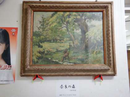 この夏のことですが、藤田金之助先生の娘様宅に保管されていた「奈良の森」という絵画を四条中学校へ寄贈しますとのお話がありました。