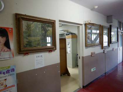 校長室前には、「自由・平等・平和」と題された3枚の油絵がありますが、これも藤田金之助先生の作品です。