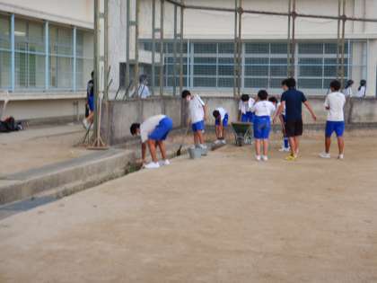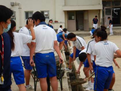グランド整備を行いました。雨が降りそうなのでにがりまきは延期して、側溝のドロ上げにすべてのエネルギーを注ぎ込みました。
