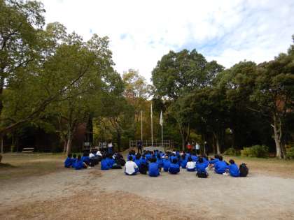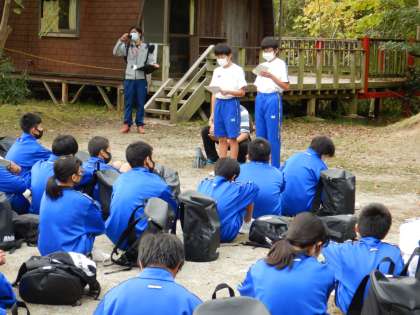 登山が終わり、無事にキャンピィ大東に到着しました。まずは、入所式です。