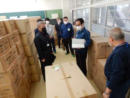 大東市の方が来られました。万が一の災害時(地震、台風など)には、四条中学校は地域の方のための避難所になります。避難所を開所するための、体育館や備蓄倉庫などの確認に来られました。