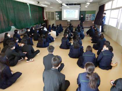多目的教室で「修学旅行」の説明・連絡を行っています。