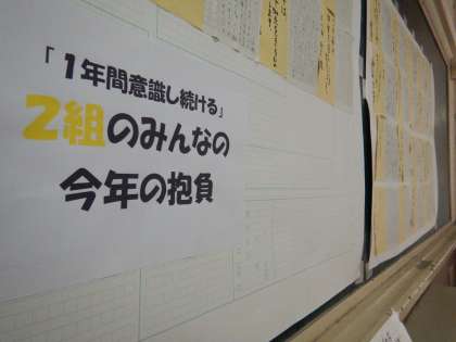 1年生のフロアーの掲示物です。今年一年の抱負が掲示してあります。それぞれ、がんばってほしいです。