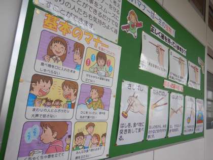 配膳室前の掲示物です。食事のマナーについてです。