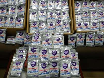 四条中学校OB、及び、四条中学校PTAのOBの方からアルコールシート(株式会社マンダム)が届きました。ありがとうございます。