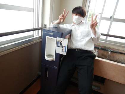 メイスイ株式会社のクリスタルクールです。「飲みました」という生徒がおいしかったと言っていました。ちょうどボトルに入れている生徒もいましたが、ホームページに載せるのは断られたのが残念でした。