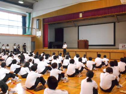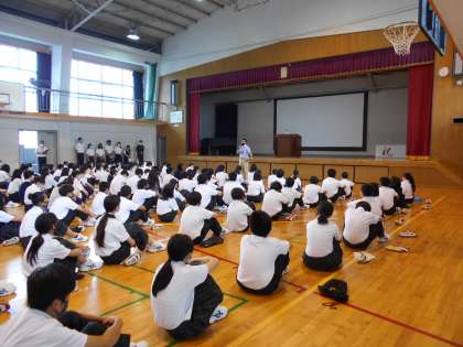 6月18日(金)朝、体育館で全校生徒集会を行いました。