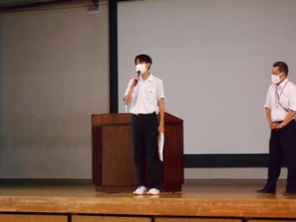 菊葉会からのアピール、生徒指導からのお話し、陸上部の表彰(優勝の秘訣を語ってもらいました)を行いました。