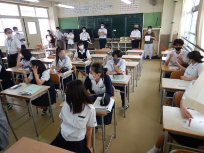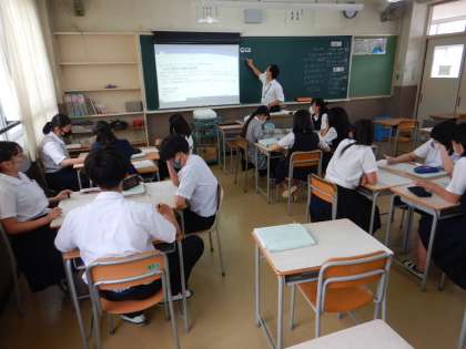 数学(分割)です。校内でのミニ研究授業を行いました。何人かの先生方が授業を見学しました。大東市教育委員会からの見学もありました。