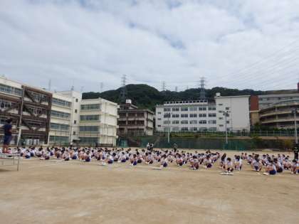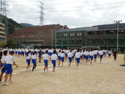 全学年による体育大会の全体練習(全練)です。