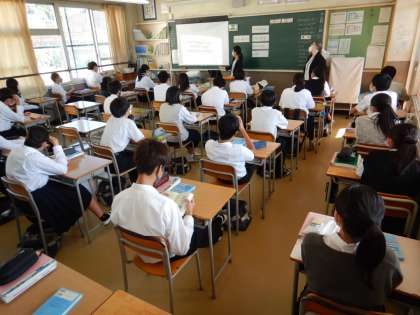 生徒が一生懸命になって英文を作っている姿を見せてくれた英語の授業でした。
