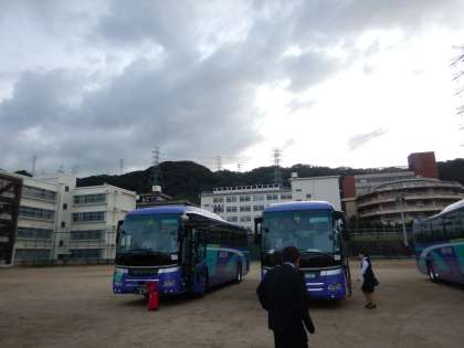 晴れています。3年生は修学旅行出発。1、2年生は通常の授業です。