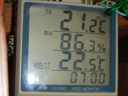 4月13日(水)朝のグランドのWBGT計です。気温が20度を超えています。暖かくなってきましたね。