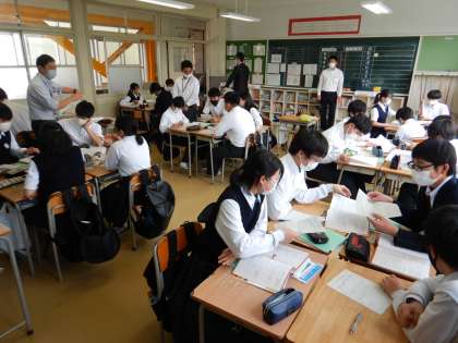 大東市教育委員会からの授業見学がありました。1年女子体育(体育館)、3年社会(公民)の授業の見学がありました。