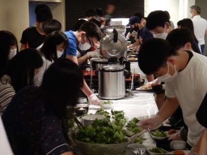 夕食です。3組です。いただきまーす!