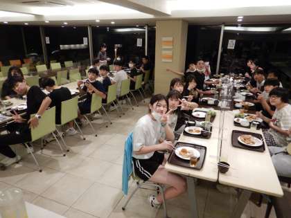 レストランの密を避けるためにクラスごとに食事をしています。「食事/散策/部屋過ごし」のローテーションです。散策の時間はこの後の「しじょんちゅライブ」の練習をクラスで行っていました。