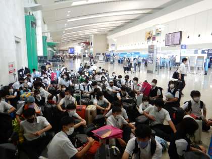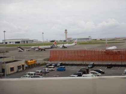 沖縄を離れる時が近づきました。那覇空港到着です。空港での案内に従って大阪への飛行機に乗ります。