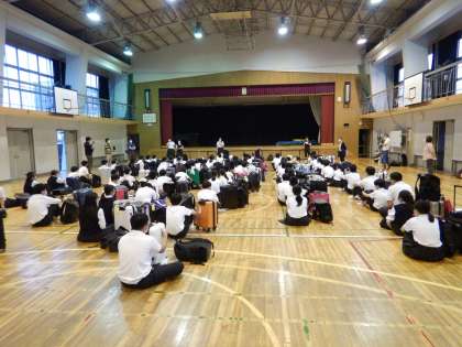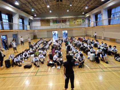 伊丹空港から学校までのバスは2台は先に到着して、もう一台はその後に到着しました。3台のバスがそろったのは18時40分でした。その後、解散式を行いました。解散式のあと、18時50分に解散し、帰宅しました。お疲れ様でした。
