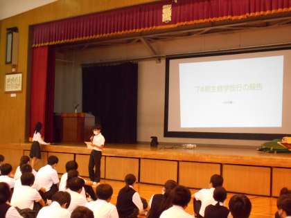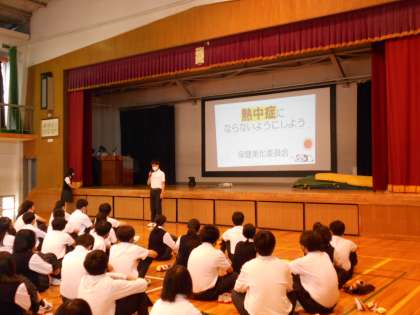 3年生からオキナワ修学旅行の報告、保健委員会から熱中症注意のアピールがありました。