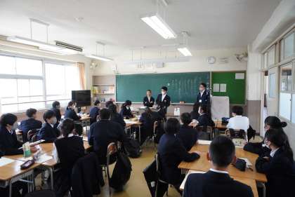 カメラを持って校内巡視をしました。2年1組の学級学活です。