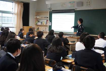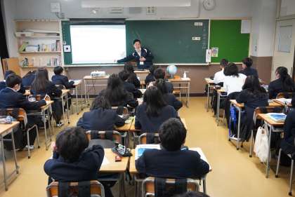 校内を色々回ってみました。1年1組は社会の授業です。内容も難しくなってきましたね。