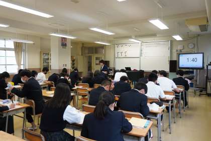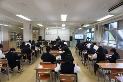 3年1組です。音楽の授業です。この後生徒と一緒に「サンタ・ルチア」を歌いました。歌って拍手をもらったのは初めてで、恥ずかしかったです。