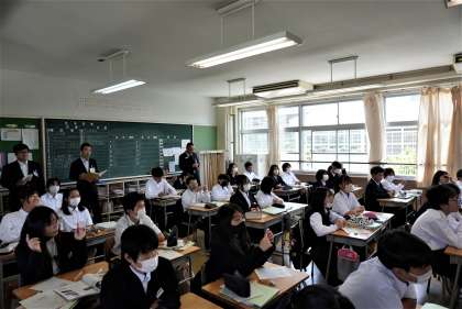 本日大東市教育委員会から指導主事が来られ、各クラスの授業を見学されました。