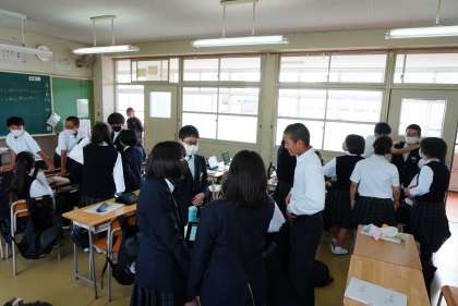 宿泊学習の取り組み中です。バスの座席を決めていました。