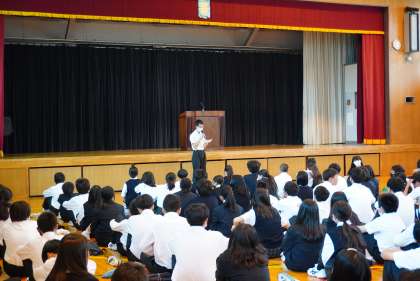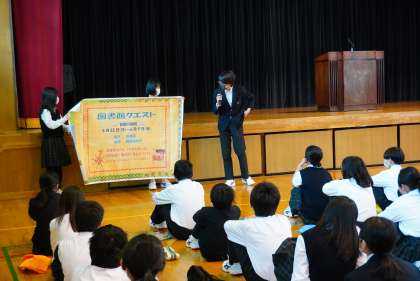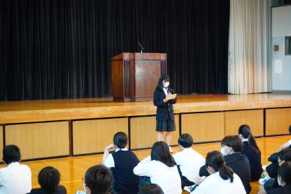 菊葉会役員からは、特に風紀面についての呼びかけ、図書委員会からは「図書館クエスト」という取り組みのこと、風紀委員会からは今日の風紀点検について発表がありました。
