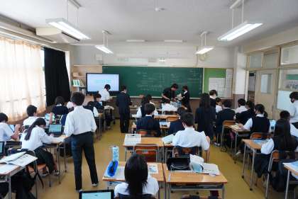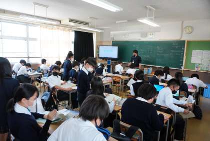 3限に校内を回ってみました。1年1組、2組の様子です。