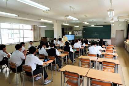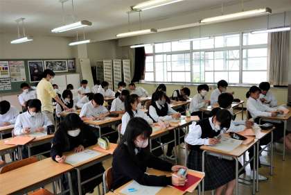 2限に校内を回ってみました。2年1組は美術の授業です。