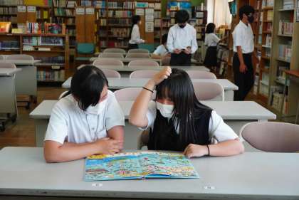 図書室で撮影しました。