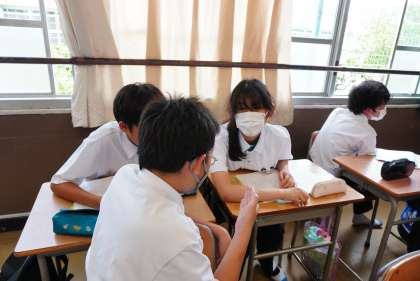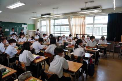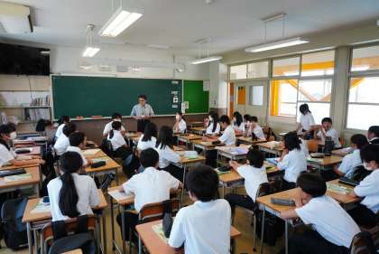 本日は講師に和泉市立郷荘中学校の松原弘先生に来ていただき、1年1組でご指導をいただきました。松原先生は、日本道徳教育学会会員で、道徳教育のエキスパートです。年間80校近く、様々な学校で道徳の授業を実践しておられます。