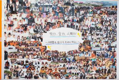 3年生フロアーで撮影。学級委員の4人が時間をかけて丁寧に作成したそうです。感謝します。