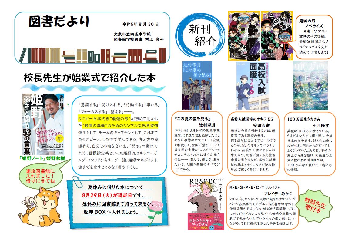 図書だより第5号を発行しました。またご覧ください。 図書だより 第5号