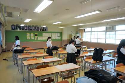 吹奏楽部の朝練風景です。音楽室の掃除後、練習に入ります。