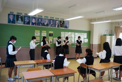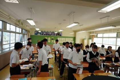 女子はとても美しい声が出ていました。男子は、曲想に合わせ強弱をつけると更にいい歌声になるでしょう。久しぶりに生徒と一緒に歌いました。