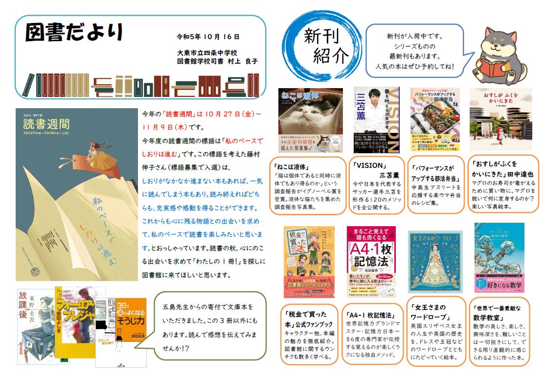 図書だより第7号を発行しました。ぜひご覧ください。(二つに分けて掲載しています)