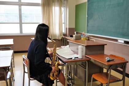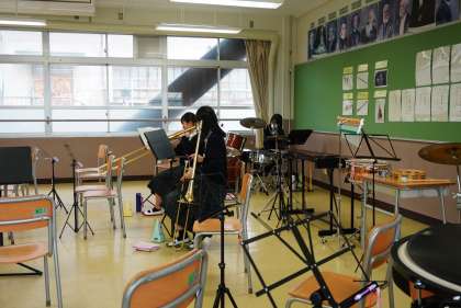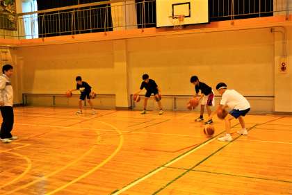 男子バスケットボール部と吹奏楽部の朝練風景を撮影しました。