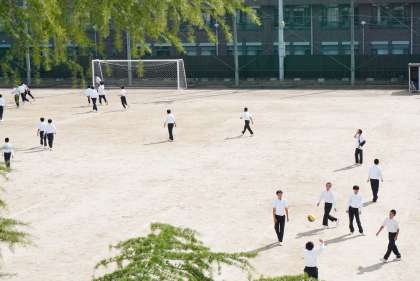 3階から撮影。今日もたくさんの生徒が遊んでいます。
