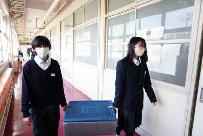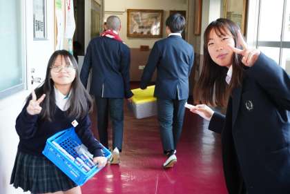 今日の給食当番さんです。ご苦労さま。