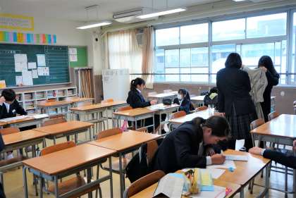 社会の単元テストがあるそうです。朝一番から頑張っていますね。