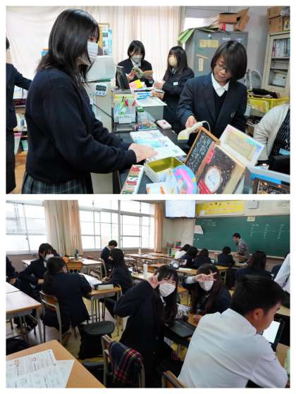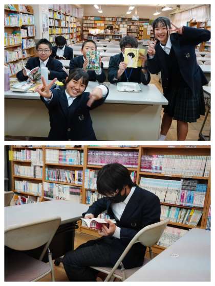 今日の昼休みです。グランド状態も悪く、図書館で過ごす生徒も多かったです。