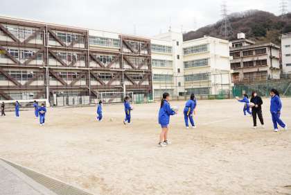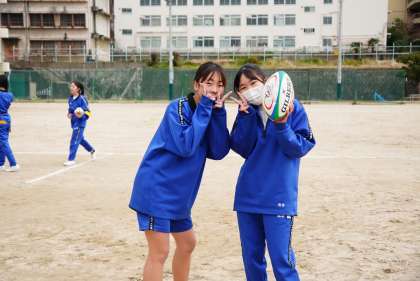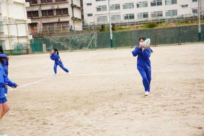 2年2組、3組の女子体育を撮影。タグラグビーは楽しいそうです。