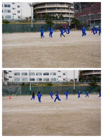 体育の授業を撮影。今日は「鬼ごっこ」をしていました。